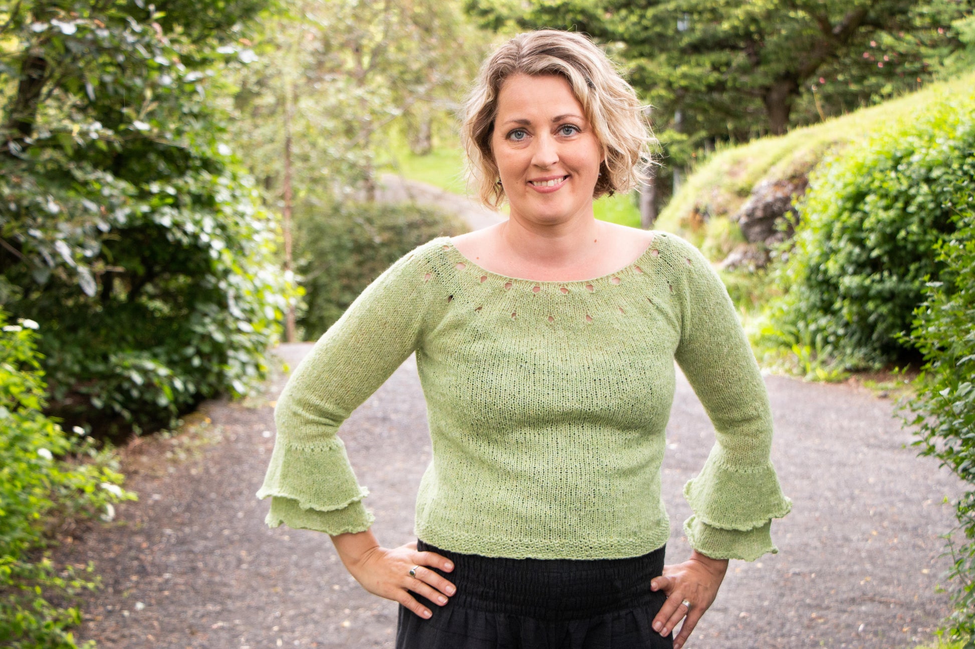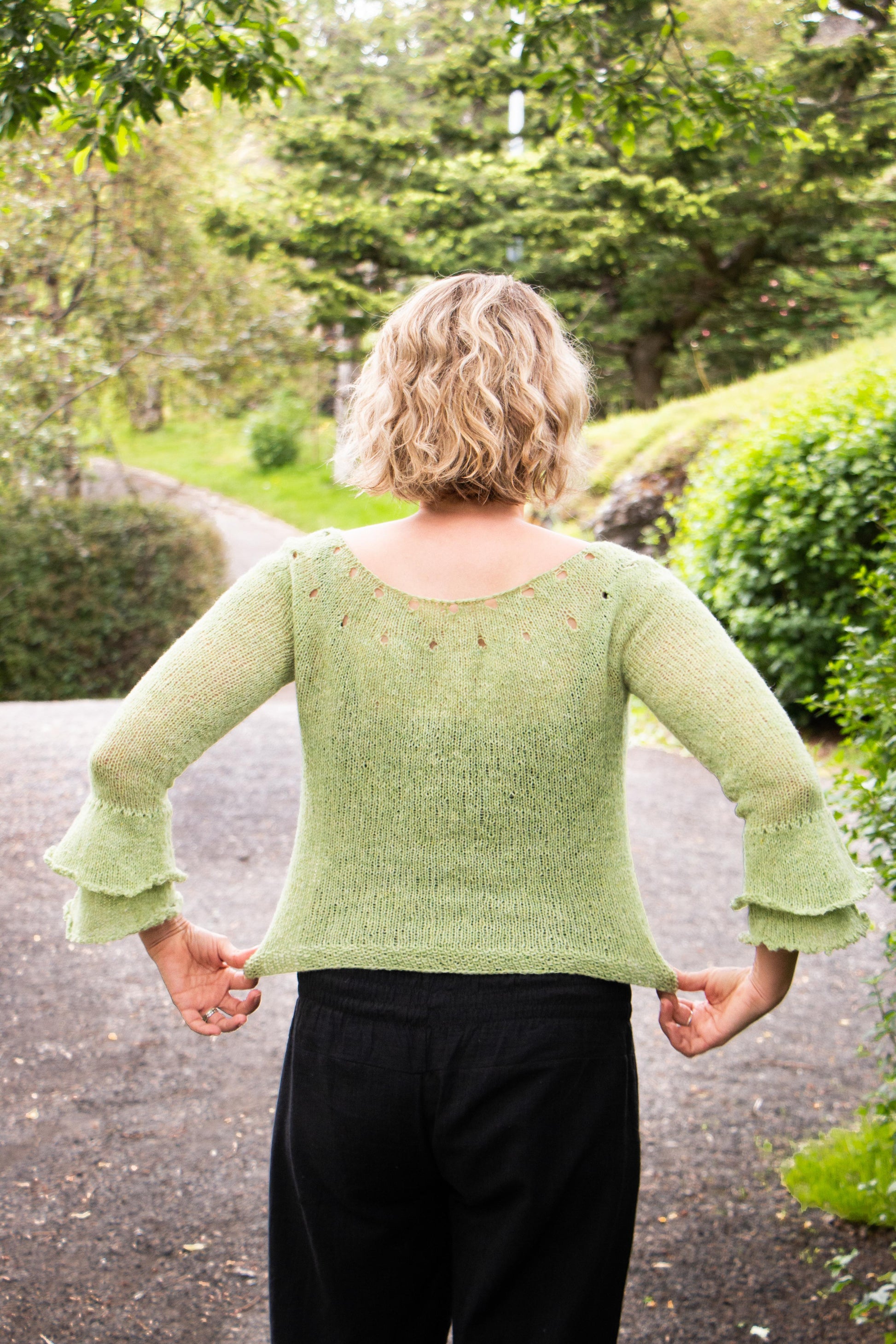 This quick and easy, yet elegant, sweater out of lambswool (or other fingering weight yarn) is named after the Calla lily. Knit from the top down with well visible and decorative increases on the yoke. The sweater was specifically designed for the sleeves. I just had to try making these frills, and kept the rest of the garment simple and plain as a contrast. The lightness of the lambswool is perfect for making the frills stay perky, but