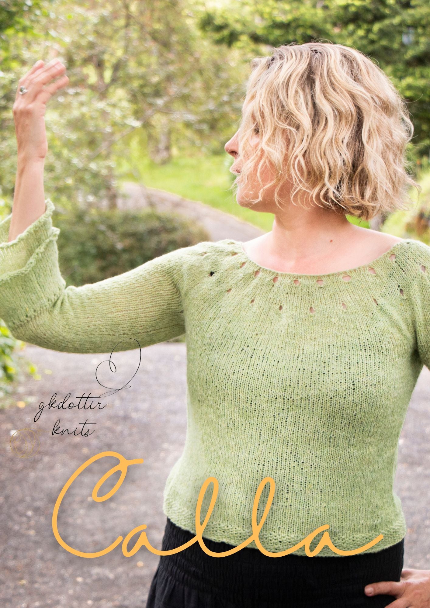 Fljótleg, einföld en sparileg peysa úr lambsull (eða öðru léttu garni í fingering grófleika), sem dregur nafn sitt af Calla-liljunni. Prjónuð ofan frá með vel sýnilegum útaukningum sem setja svip á berustykkið.